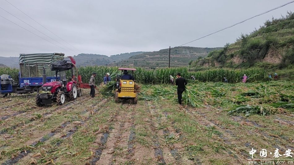 时下,青贮玉米迎来了收获季,在魏店镇陇滩村青贮玉米地里,当地农户们正抢抓农时,开始大规模地收割青贮玉米,呈现出一派繁忙的丰收景象。