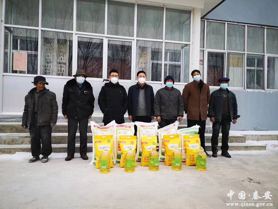 为认真学习宣传贯彻党的二十大精神,全力推进巩固拓展脱贫攻坚成果同乡村振兴有效衔接各项工作,1月16日,在新春佳节即将来临之际,天水市人大常委会办公室副主任刘兵、教科文卫工委副主任马斌、办公室老干科一级主任科员张凯代表市人大常委会机关深入帮扶村秦安县兴丰镇李山村和那坡村开展走访慰问活动,向困难群众、在村老党员和低保户送去了人大常委会机关的关怀和节日祝福。