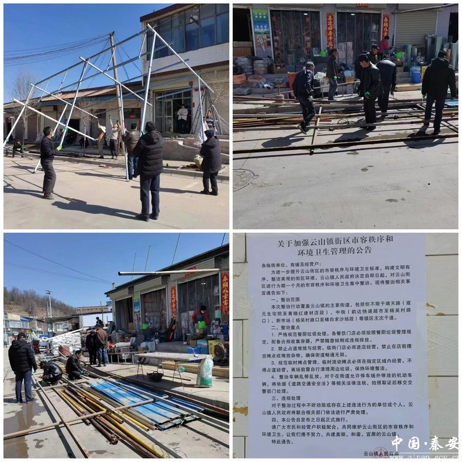 规范经营塑造美丽镇容。针对镇政府至新市场等镇区主要路段商铺占道经营和流动摊贩乱堆乱摆行为,云山镇以问题导向,精准施策,把好“管控关”,确保问题及时发现、及时治理。全面摸底后,拆除遮阳伞、遮阳棚等乱搭乱建临时建筑物36处,规范临时摊位62个,重塑了街道的秩序与美观,为居民营造了一个整洁、有序的生活购物环境。