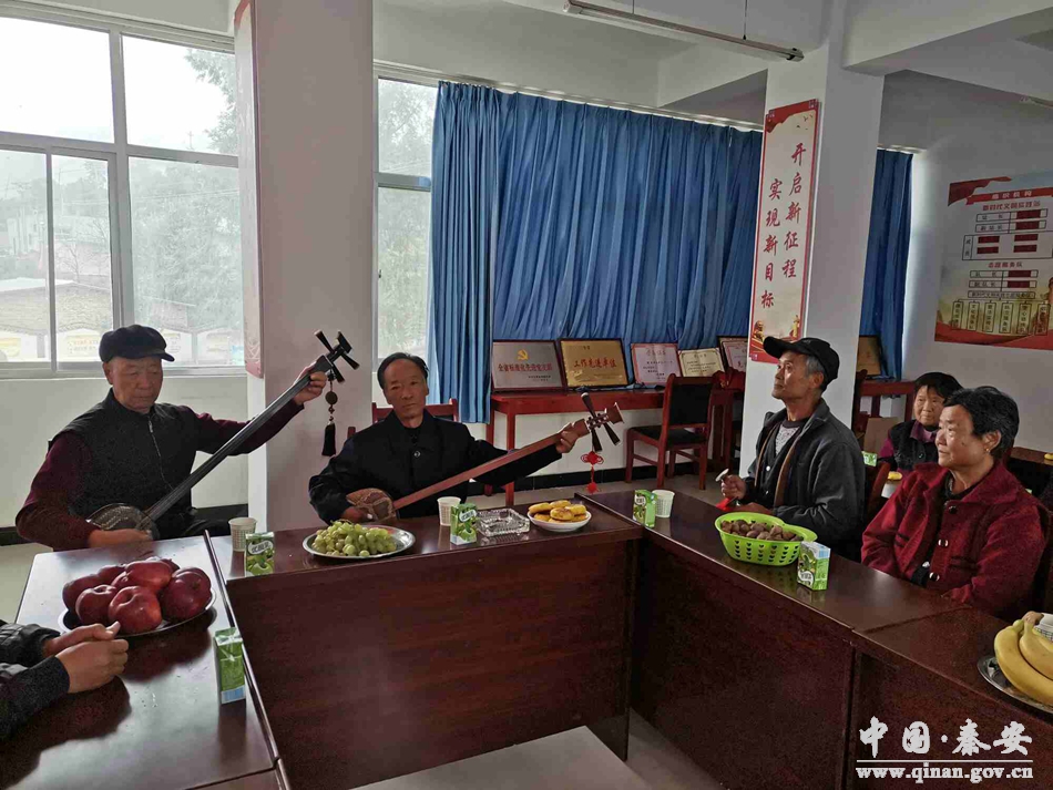 为营造浓厚的节日氛围,老年人欢聚一堂,一起共度重阳节,他们一边品尝着精心准备的水果、点心等各种吃食,一边欣赏着老年人喜闻乐见的秦安小曲、秦腔等,整个活动展现了敬老爱老的精神风貌,丰富了老年人文化生活。