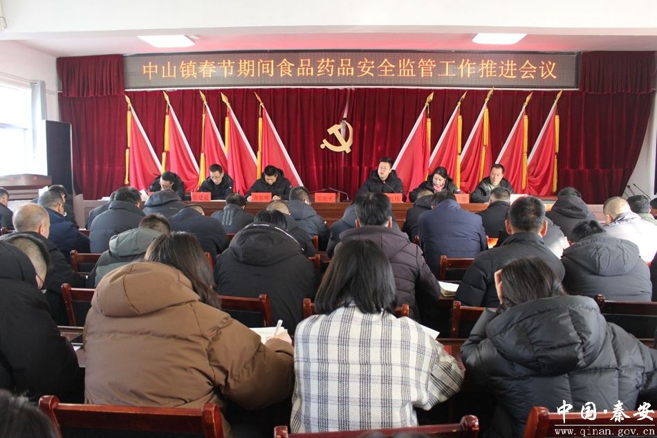 为持续加强春节期间全镇食品药品安全监管水平,1月20日,中山镇召开春节期间食品药品安全监管工作推进会,镇党政领导班子成员、各站所(中心)负责人,各村党支部书记、镇村两级食品安全协管员和信息员及镇市场监管所全体干部参加会议。