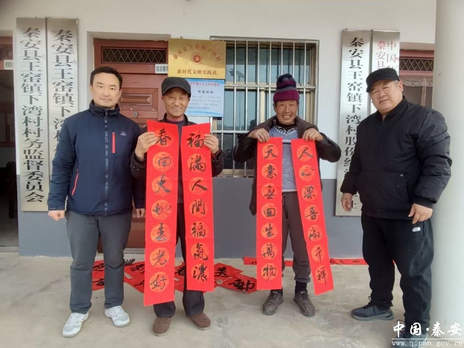 在魏湾村、下湾村文明实践站组织开展“送廉洁春联 传承优良家风”写春联活动,为广大村民送上新春祝福,拿到春联的居民们举起一副副红火的春联,高兴不已,纷纷竖起大拇指为他们的暖心服务点赞。