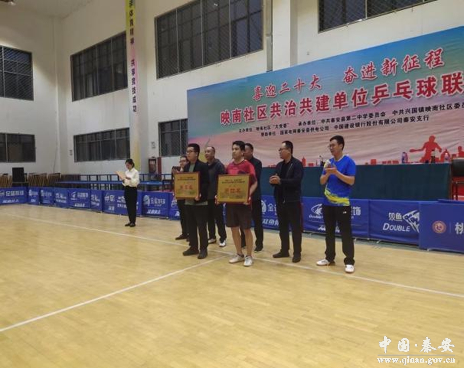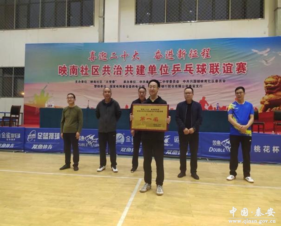 金秋九月,秋高气爽,为喜迎国庆佳节和党的二十大胜利召开,进一步加强共治共建单位之间互联互动、构建共建共治共享城市基层党建工作新格局。9月26日,由中共秦安县第二中学委员会、中共秦安县兴国镇映南社区委员会承办,国家电网秦安县供电公司、中国建设银行秦安支行赞助的“喜迎二十大·奋进新征程”乒乓球联谊赛在全民健身中心举行。秦安县委办公室、兴国镇政府、秦安二中、中国建设银行秦安支行、秦安县退役军人事务局相关领导参加了开幕式。