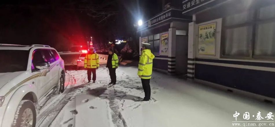 针对G247线王铺梁路段积雪严重的情况,交警大队联合秦安公路段融雪保畅工作,并采取远端分流、近端管控、劝返等措施,引导驾驶人合理规划行车路线。风雪中,大队执勤民辅警主动协助开展除雪融冰工作,通过微信群、村大喇叭等方式,及时发布气象预警信息,广泛宣传冰雪天气下出行安全知识,积极倡导非必要不出行,提高群众安全意识。各村交通安全劝导站及时上岗开展劝导工作,提醒过往车辆保持车距、减速慢行,守好村口出村第一关,不易通行的山区村出村道路拉闸限行,禁止车辆出村上路,有效防止道路交通事故发生,全力保障道路交通安全稳定。