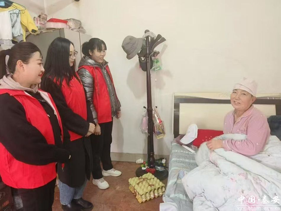 慰问组深入走访辖区内特殊困难家庭,为20多名困难妇女送上包含米面鸡蛋、卫生用品的“暖心包”,针对一些行动不便的困难女性家庭,慰问组成员帮助她们打扫房屋。之后,慰问组成员与她们面对面交流,认真倾听她们在生活中遇到的困难和问题,详细了解患病妇女治疗情况,并邀请镇卫生院医生开展女性健康现场科普,叮嘱她们保重身体,注意防寒保暖,保持乐观的心态,积极面对生活。