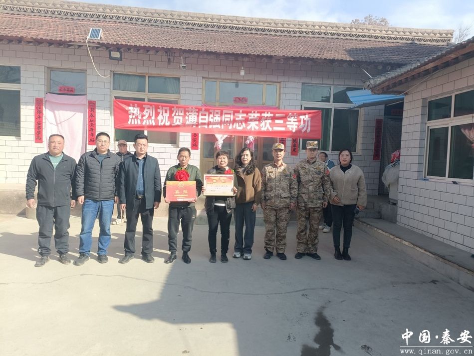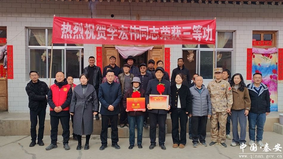近日,秦安县退役军人事务局联合五营镇退役军人服务站以及镇、村志愿者,开展为荣获“三等功”的现役军人家庭送喜报活动,以实际行动表达对军人及其家属的崇高敬意和深切关怀,并将满载荣誉的喜报和慰问品送到军属手中,感谢他们为国防事业作出的无私奉献。