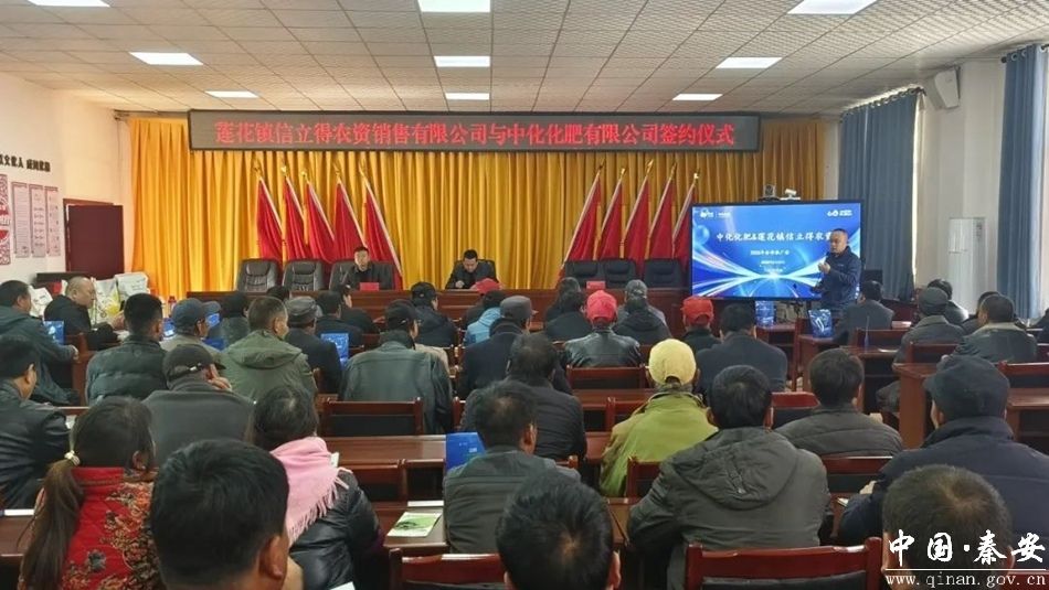 3月11日,莲花镇信立得农资销售有限公司与中化化肥有限公司合作推广暨签约仪式在莲花镇政府隆重举行。镇政府相关负责人、中化公司甘肃区域负责人,莲花镇各村股份经济合作社负责人、种植大户代表等共计110余人参加活动。