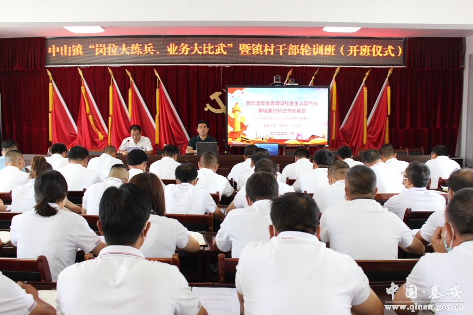 为深入学习贯彻习近平新时代中国特色社会主义思想和省第十四次党代会精神,认真落实新时代党的建设总要求和新时代党的组织路线,进一步提高镇村干部理论素养和履职能力,全面推进乡村振兴战略落地落实。8月5日,中山镇举办 2022年度“岗位大练兵、业务大比武”暨镇村干部轮训班开班仪式,全体镇干部、各村党支部书记、驻村工作队第一书记、专职化文书共计100余人参加了培训。