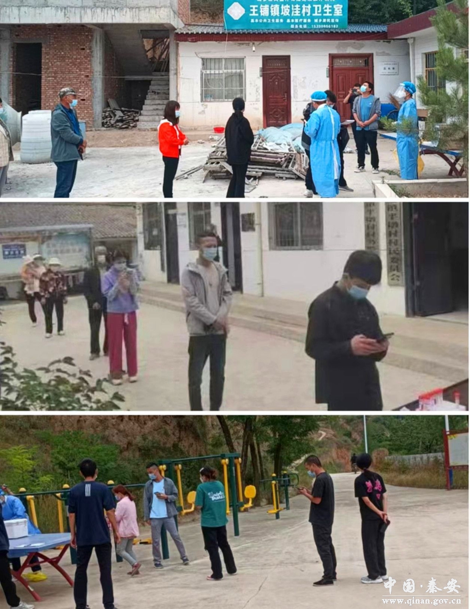 在每个村委会广场设置了等候区、登记区和采样区,在镇村干部的组织引导下,群众佩戴口罩,保持距离,有序排队进行核酸检测,整个过程规范、有序,确保了核酸检测采样工作的顺利完成。