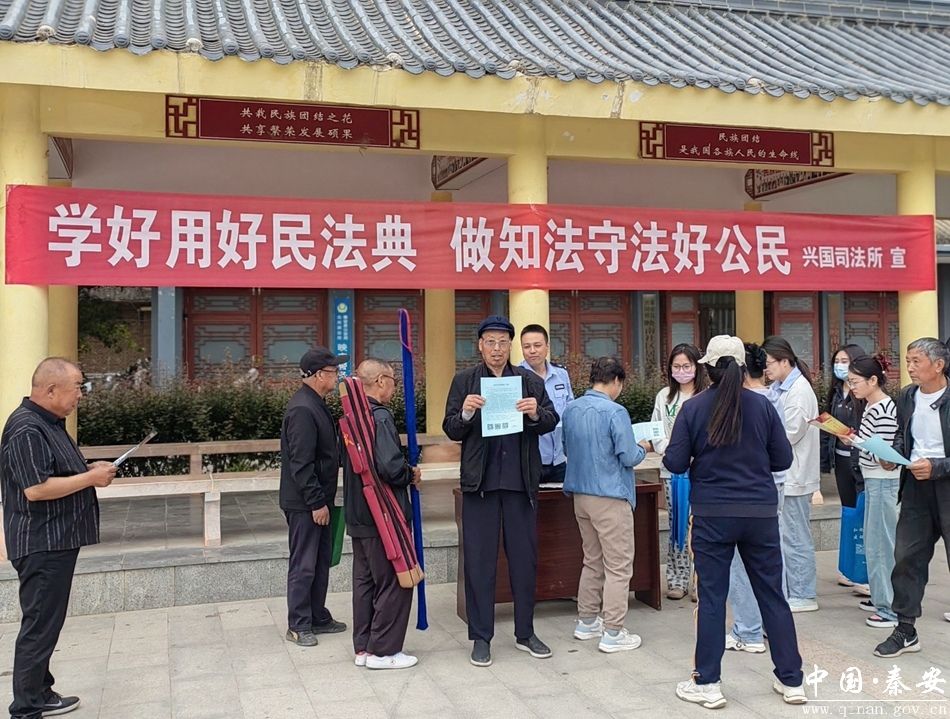 5月14日,兴国镇司法所联合兴国镇映南社区,在映南社区安家园子文化广场开展“民法典进社区”宣传活动,旨在进一步加强法治乡村社区建设,提高全民法律意识。