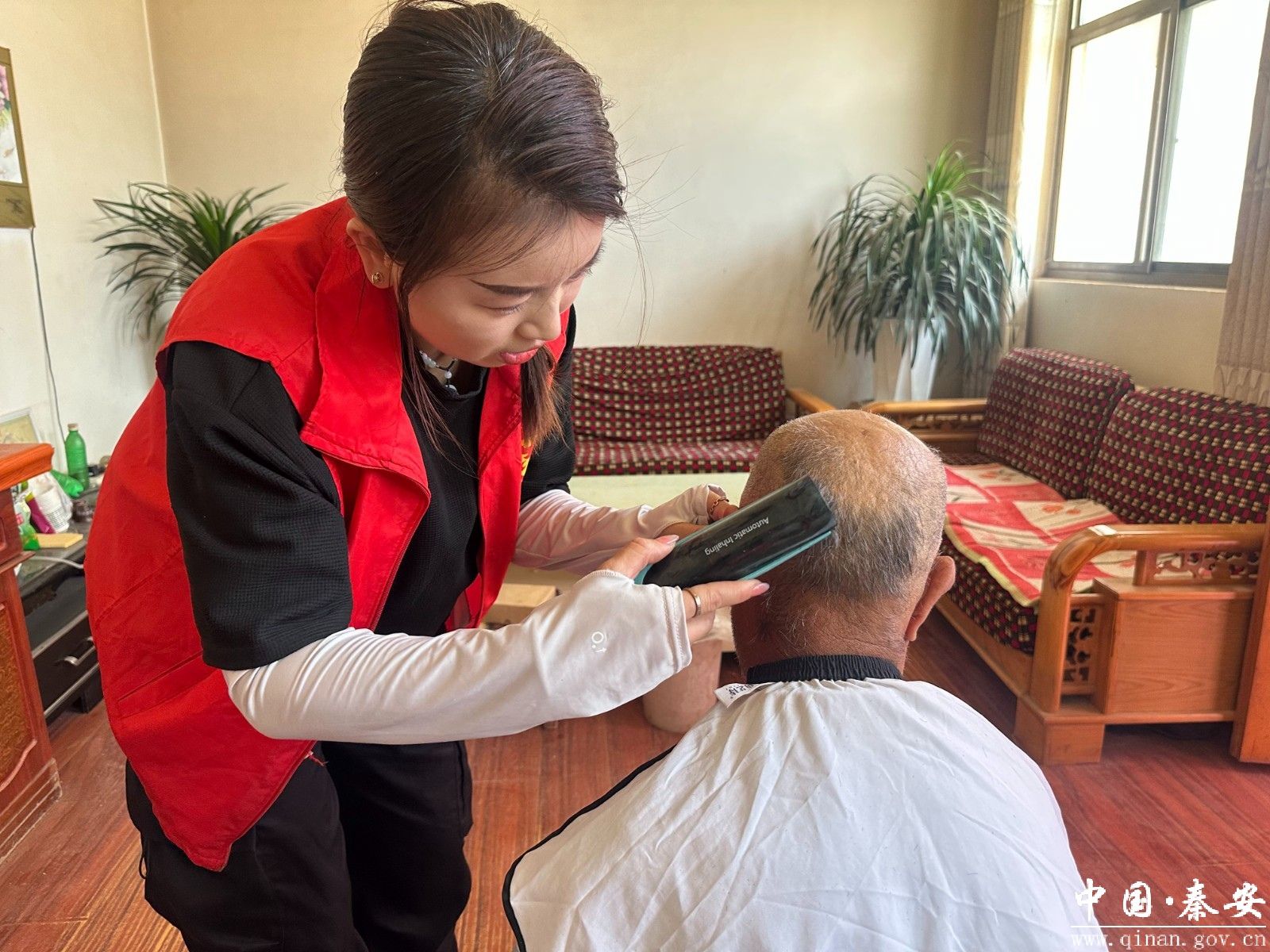 活动现场,志愿者们分工明确,迅速行动。围绕关爱留守老人和残疾人群体,志愿者们主动上门,开展爱心理发活动,志愿者们在耐心的询问老人们对发型的要求后,一边娴熟的进行修剪,一边贴心地询问老人近期的身体状况,陪老人聊天,了解他们的生活情况。并对特殊困难群众家中的庭院、室内卫生进行全方位清洁,清理杂物、擦拭门窗桌椅、整理床褥,不一会儿,老人们的居住环境焕然一新。看到干净整洁的家,老人们纷纷对志愿者竖起大拇指,脸上洋溢着幸福的笑容。