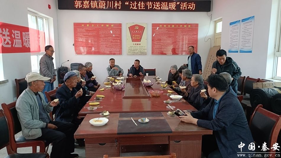 在郭嘉镇蔚川村新时代文明实践站,志愿者擦桌扫地摆美食,布置好“端午节茶话会”的活动场所。生活困难群体、党员群众代表围坐一堂,尽情品尝着香蕉、粽子、白脆瓜等,老人们讲述着过去的奋斗经历和社会的巨大变迁,志愿者关切询问他们的生活起居和健康状况,感谢他多年来为乡村发展作出的贡献,并希望他们保重身体,继续发挥余热,为村庄建设建言献策。活动现场气氛温馨、言笑晏晏,节日的温情在小小的会议室流动传递,老人们的笑容为这个端午增添了一份感动和温暖。