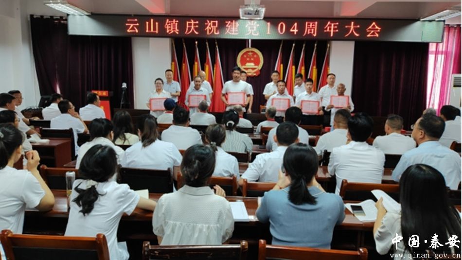 近日,云山镇举行了庆祝建党104周年系列活动。全体镇干部、村干部、各村第一书记、镇属单位负责人,以及“光荣在党50年”老党员代表、优秀共产党员和优秀党务工作者代表等130余人参加活动。