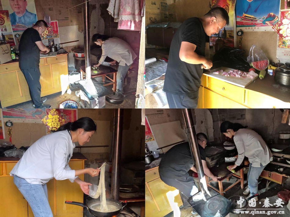 当天,中山村驻村工作队成员带着自己购置的蔬菜瓜果到村中的“五保户”张贵成家中,一边陪老人聊天谈心,一边下厨为老人做起了“暖心饭”。当饭菜全部端上桌后,工作队成员们与老人围坐在一起,其乐融融地品味着简单的饭菜,听老人聊着村中的家长里短。过程中工作队成员们还详细询问了老人的生活起居、饮食情况、身体状况等,叮嘱他要注意身体和饮食卫生,有困难尽管联系工作队。