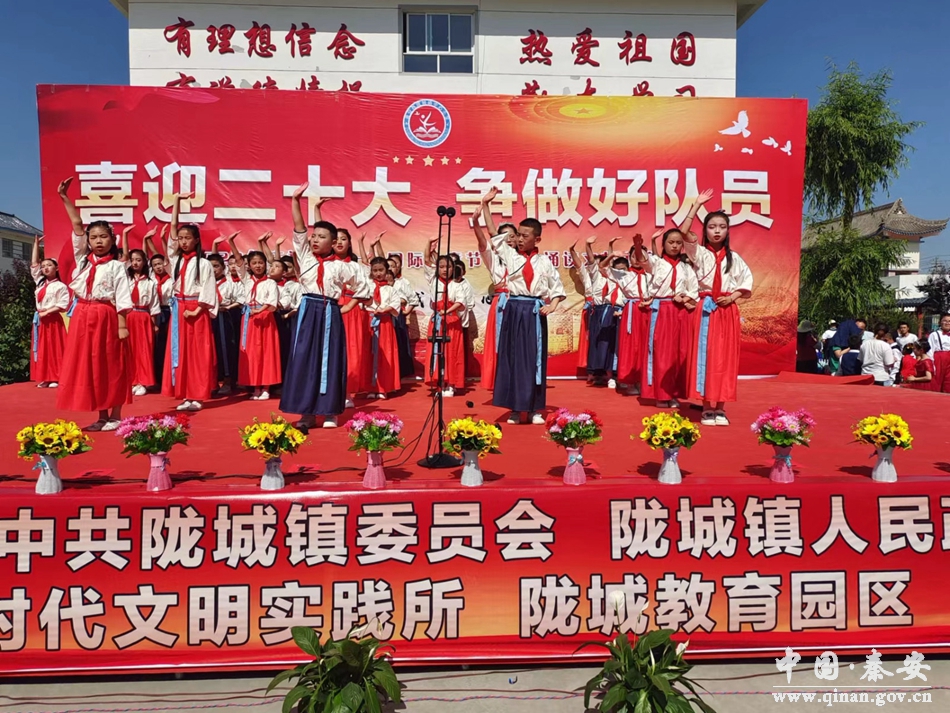为传承中华文化优良传统,助推青少年健康成长,6月1日,陇城镇举办了以“喜迎二十大,争做好队员”为主题的2022年“六一”国际儿童节暨经典诵读文艺汇演。陇城镇党委、镇政府主要领导、嘉宾、老党员、离退休职工、少先队员及家长等400余人参加活动。