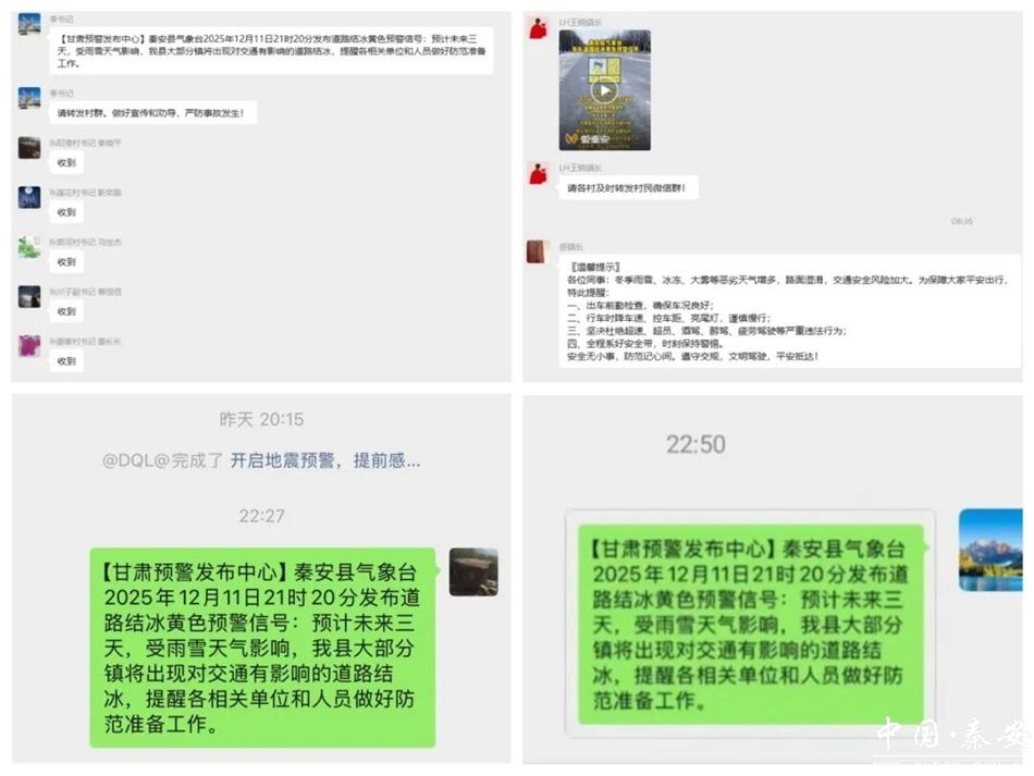 “各位村民请注意,今晚到明天有持续降雪,路面易结冰,尽量减少不必要外出,骑车、驾车务必减速慢行,注意安全!”降雪前夕,镇村组三级微信群矩阵,向辖区群众推送降雪预警信息、出行安全提示。针对老年人、留守儿童家庭等特殊群体,村干部还通过电话、上门走访等方式点对点提醒,确保预警信息无死角。同时,微信群内实时更新天气变化、道路通行状况,方便群众及时掌握出行动态,提前做好防范准备。