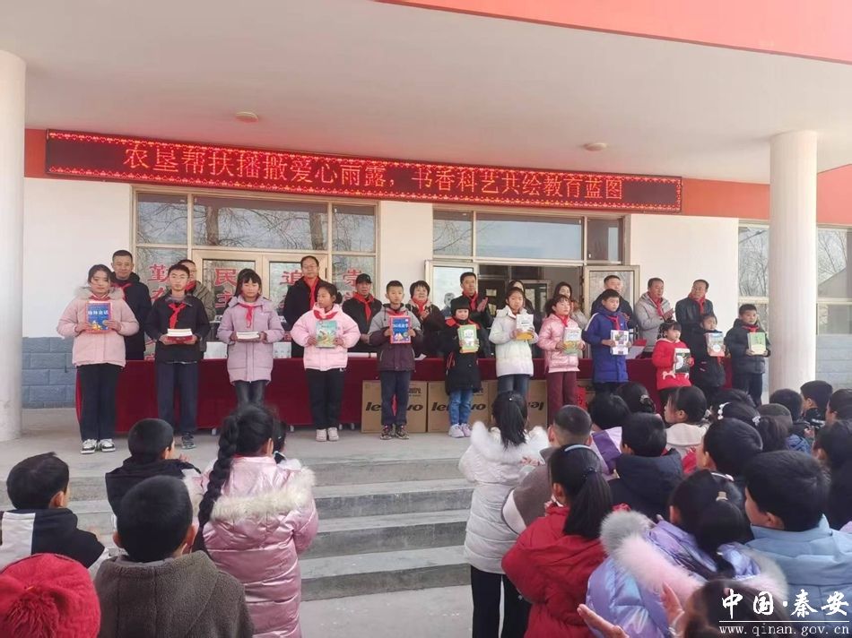12月29日,甘肃农垦驻村帮扶工作队联合兰州市正宁路小学、张掖路小学,邀请书法家为王铺镇郭集小学捐赠课外书2000多册、书法作品27幅。通过图书捐赠、书法艺术浸润与科技创新体验三大板块,构建起“文化润心+科创启蒙”的立体教育帮扶新模式,为乡村教育振兴注入持续动力。