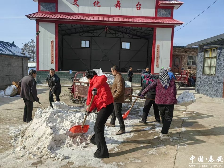 年轻村民早早拿着工具加入了队伍,笑着说:“这几天雪下得这么大,路滑得很,接近八旬的赵大爷都出来扫雪了,我们搭把手就是理所应当的事,让大家出门都能踏实点。”