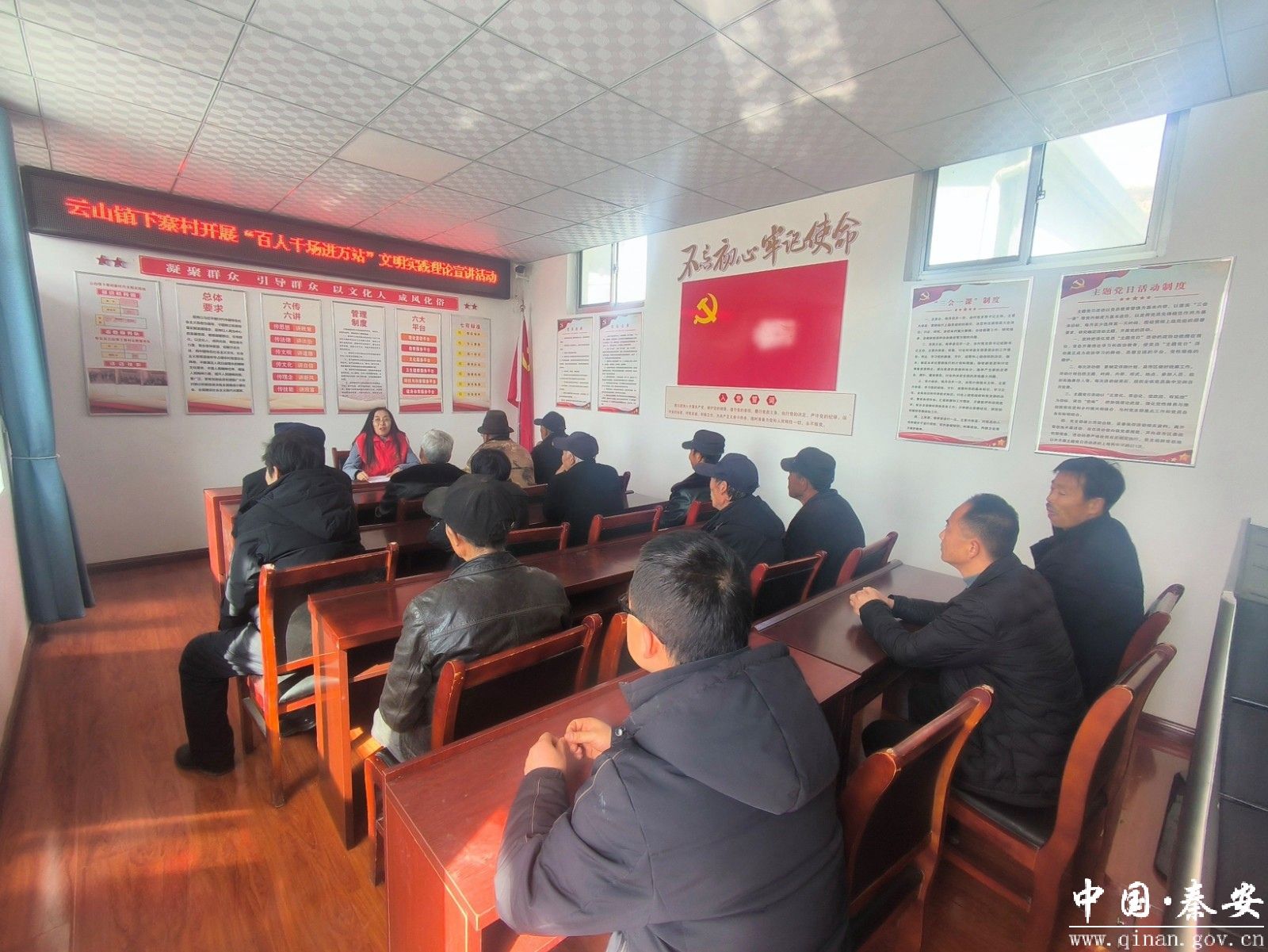 近日,云山镇下寨村新时代文明实践站开展“百人千场进万站” 文明实践理论宣讲活动。县委党校讲师、下寨村驻村第一书记王冬平担任主讲人,以党的二十届四中全会精神为核心内容,面向村内党员代表、村民小组长及群众代表开展专题宣讲,将全会精神送到基层一线,为乡村振兴注入思想动能。