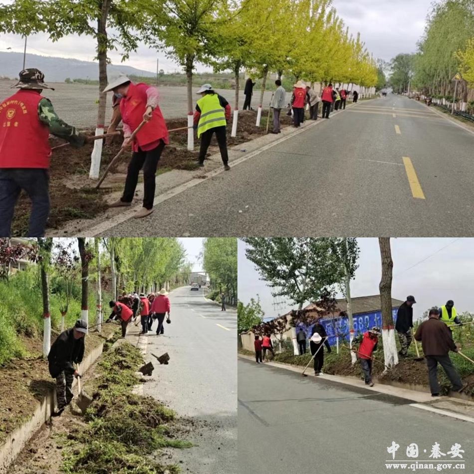 行动中,党员干部群众热情高涨、干劲十足,自带铁锹、耙子等农具种植多种花卉,同时,对道路两侧路肩进行了整修,并对杂草进行清理清运,用实际行动改善生活环境。