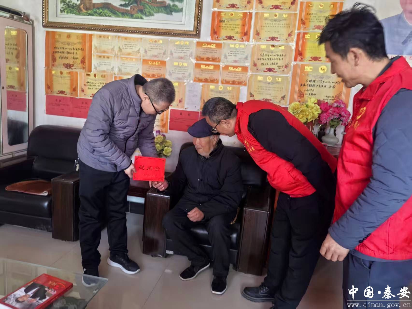 宣讲结束后,宣讲团队了解到部分老党员因行动不便、居住偏远等原因难以集中参与。为让党的声音不落一人、关怀不缺一户,宣讲团联合阳坡村党支部专门组织“送教上门”小分队,走进老党员、退役军人李子生家中,每到一户,慰问组都与老党员们促膝谈心,详细询问他们的健康状况、生活情况和实际困难,感谢他们为党的事业和乡村发展作出的贡献,并送上慰问品。