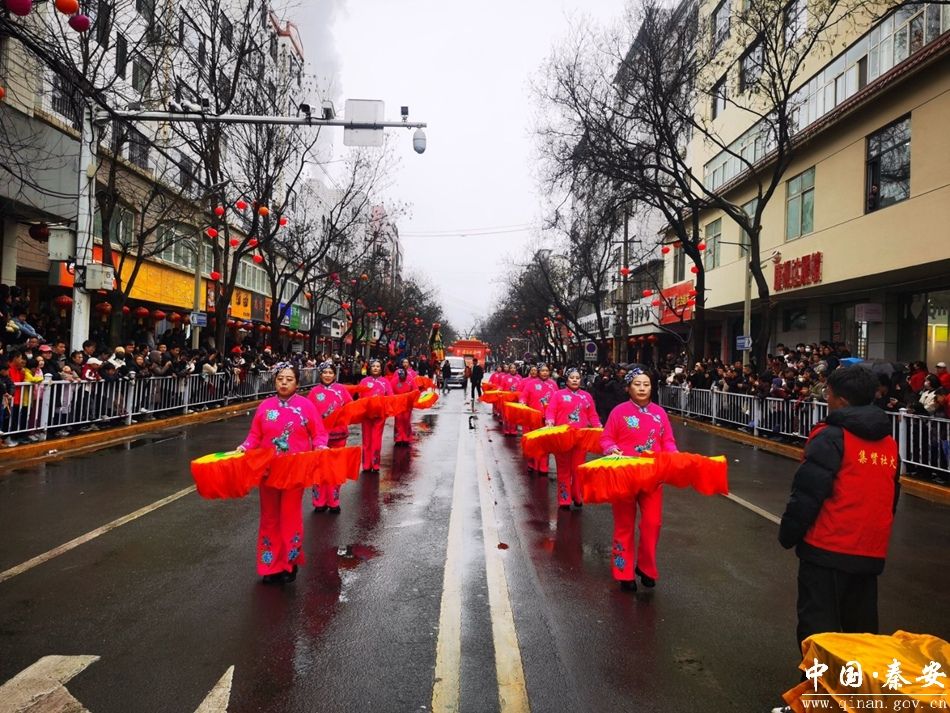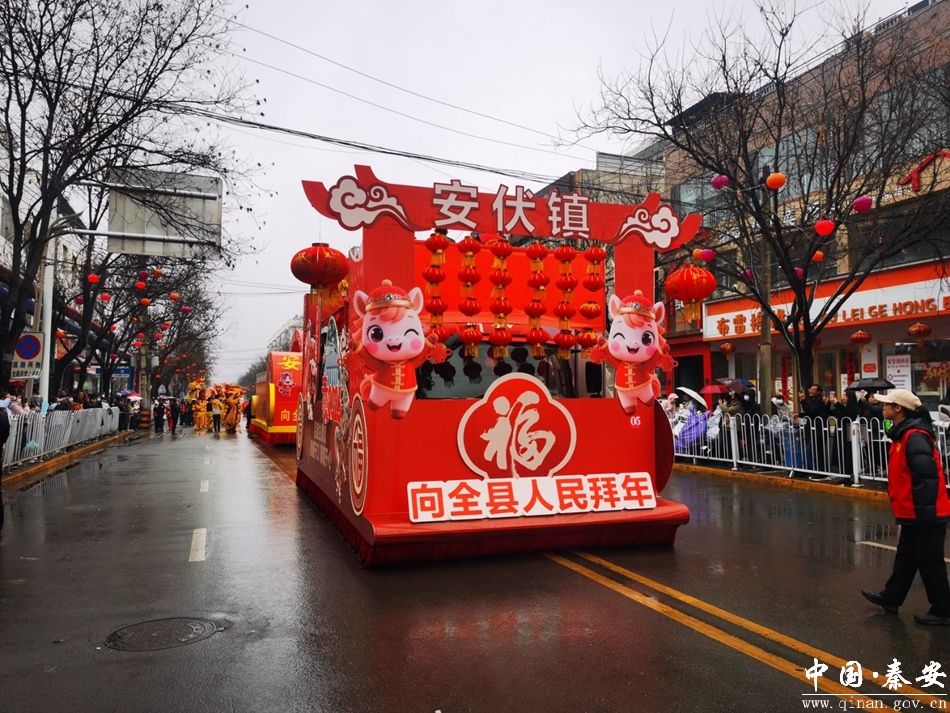 彩车引领,社火随行。由百余名群众组成的传统社火方阵紧随其后,气势恢宏,热闹非凡。融舞龙、舞狮、秧歌、秦安小曲于一体,轮番上演二龙戏珠、二狮闹新春、务农、买货郎、张秀英买水非遗跑旱船、新春秧歌、集贤战鼓等经典节目。表演形式多样、特色鲜明,优雅婉约与热烈奔放交相辉映,尽显乡土韵味与民俗风情,为新春佳节增添浓浓喜气,体现了新时代安伏镇人民的团结精神与丰富多彩的春节文化活动。