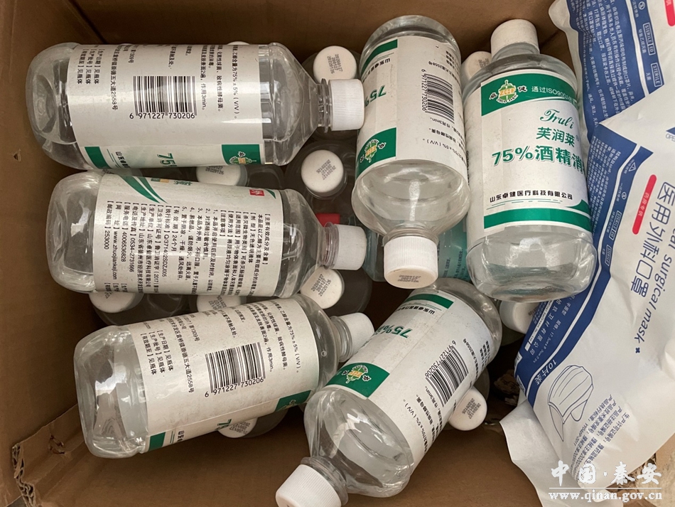 (第一书记陈然捐赠消毒液一箱、口罩若干)