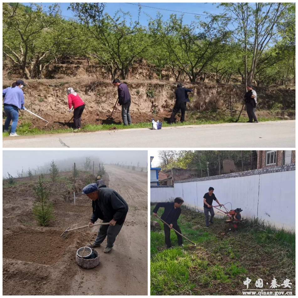 行动中,党员干部群众热情高涨、干劲十足,自带铁锹、耙子等农具种下百日草、万寿菊等多种花卉,同时,对道路两侧路肩进行了整修,并对杂草进行清理清运,用实际行动改善生活环境。