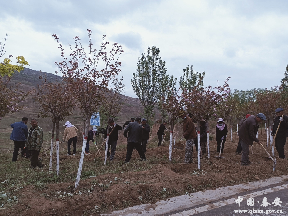 植绿护绿,装点乡村妆容。全面实施国土绿化工程,统筹公益性岗位、护林员及群众志愿者,汇聚新时代文明力量,全力开展植绿护绿行动,对尹褚路、康尹路沿线及村组主干道路肩、绿化带进行整修,开展行道树补植补造及浇水工作,打造绿化小节点,让一条条乡村道路变得平整美观,让一棵棵树苗得到了滋润养护,为乡村装点了绿色,增添了生气。