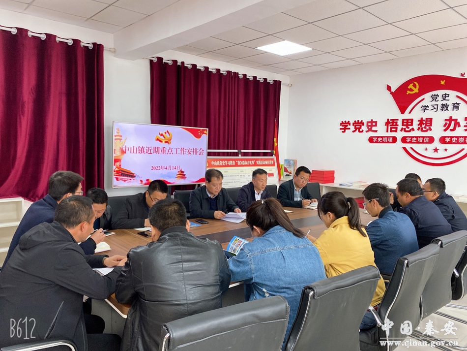 4月14日,中山镇召开近期重点工作安排会,镇科级以上领导干部参加会议。