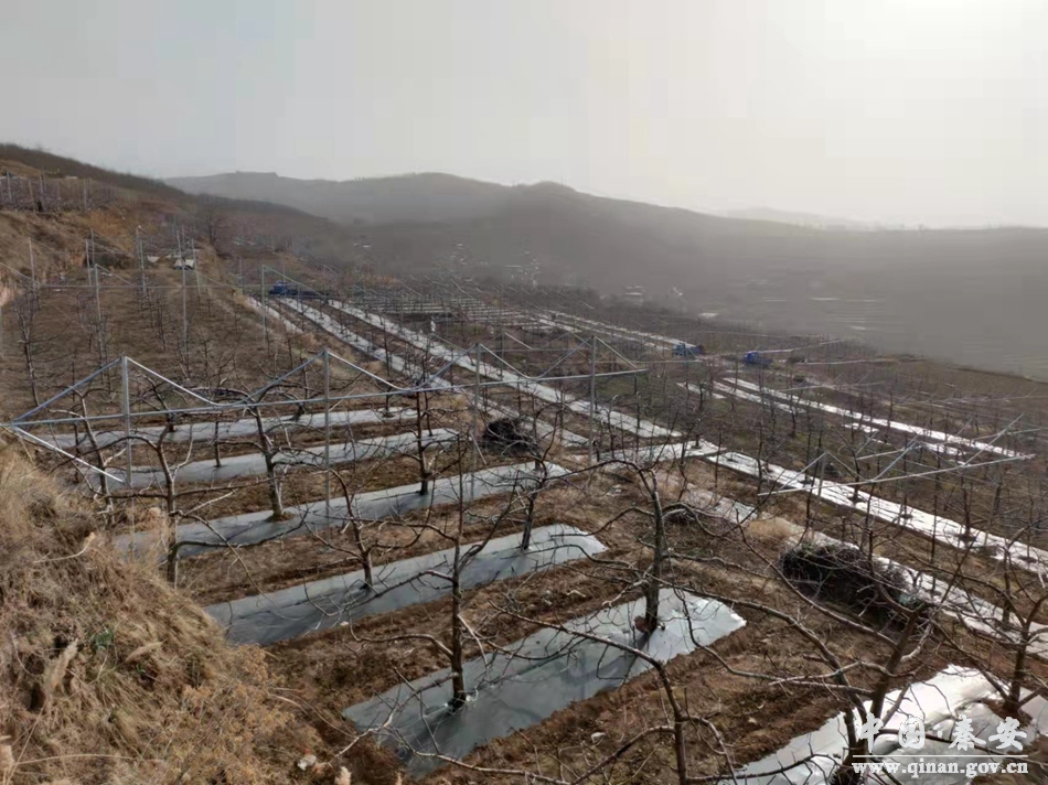 “覆膜保墒”推进果园提质增效。王尹镇在抓好疫情防控工作的同时,积极组织开展春耕备耕工作,引导广大农户抢农时、争主动,相继开展清草、整地、松土、播种等工作。在王尹镇田间地头,到处是果农们在苹果园里抢墒覆黑膜的农忙景象。