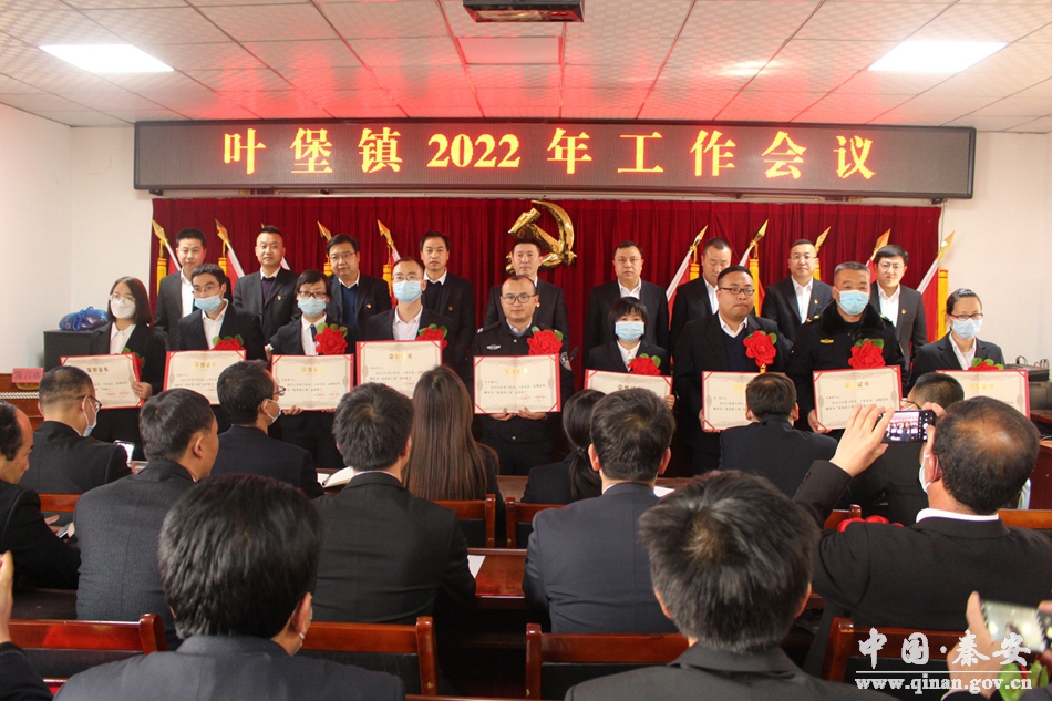 会上,传达了中央、省、市有关会议精神和全县工作会议精神;宣读了《中共叶堡镇委员会叶堡镇人民政府关于表彰2021年度先进基层党组织和优秀个人的决定》;参会领导为获奖集体和优秀个人代表进行了颁奖;获奖代表作了交流发言,后进集体作了表态发言;镇党委书记就做好2022年各项重点工作作了讲话。