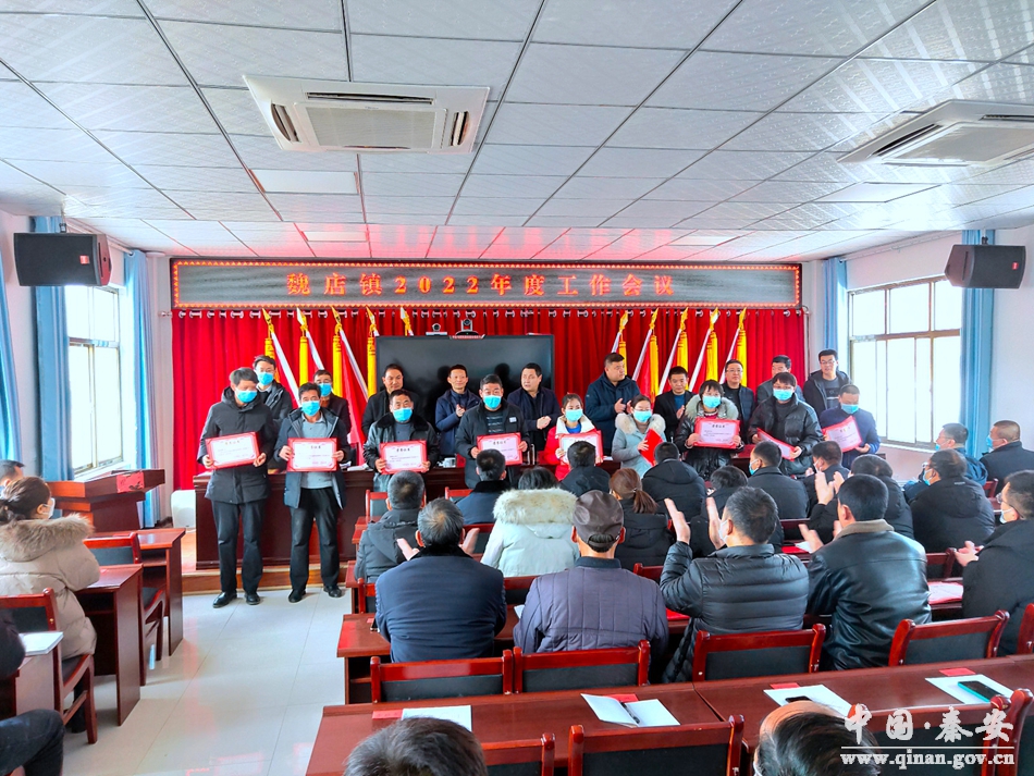 会上,宣读了《中共魏店镇委员会 魏店镇人民政府关于表彰2021年度综合考核先进村集体、先进单位、优秀工作者、疫情防控工作先进个人的决定》;为2021年度全镇综合考核先进村集体、先进单位、优秀工作者和疫情防控工作先进个人进行了颁奖;分管领导分别对2022年度各自分管领域的重点工作进行了梳理安排;镇长与包村领导、包村领导与村级责任人分别签订“三亮”目标管理责任书;镇党委书记就做好2022年各项重点工作作了讲话。