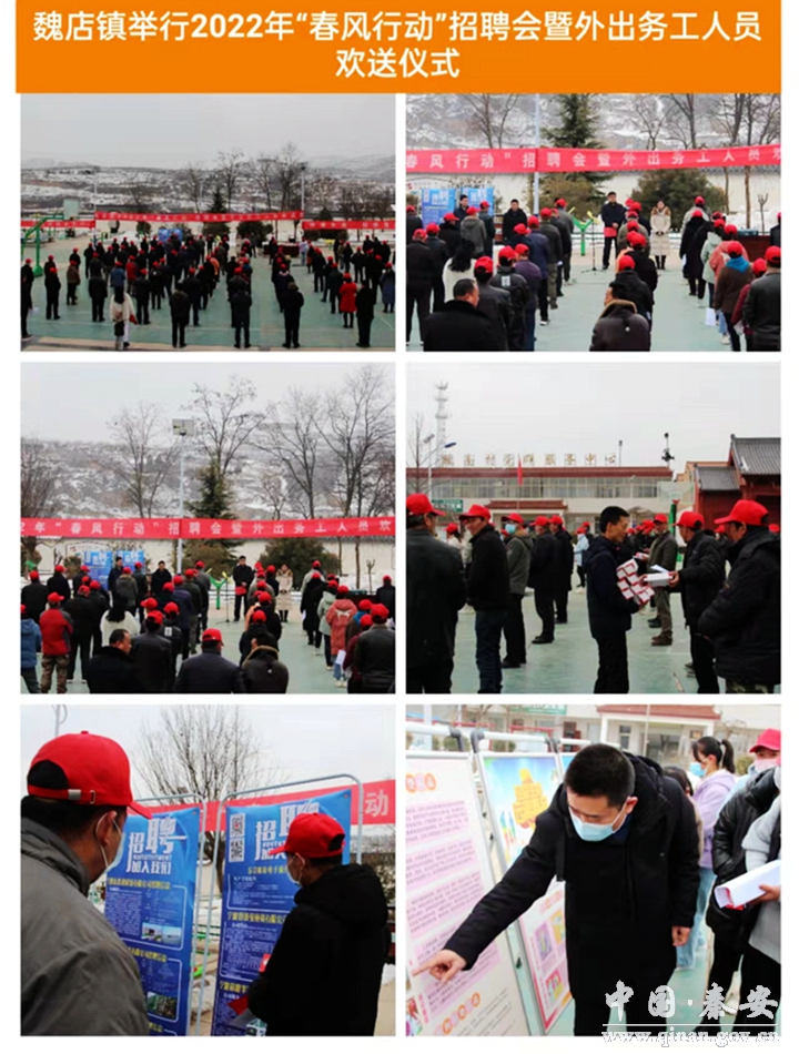 2月14日,魏店镇2022年“春风行动”招聘会暨外出务工人员欢送仪式在魏南村文化广场举行,魏店镇主要负责人、县劳务办相关负责人及赴外地务工农民工共计120余人参加活动。