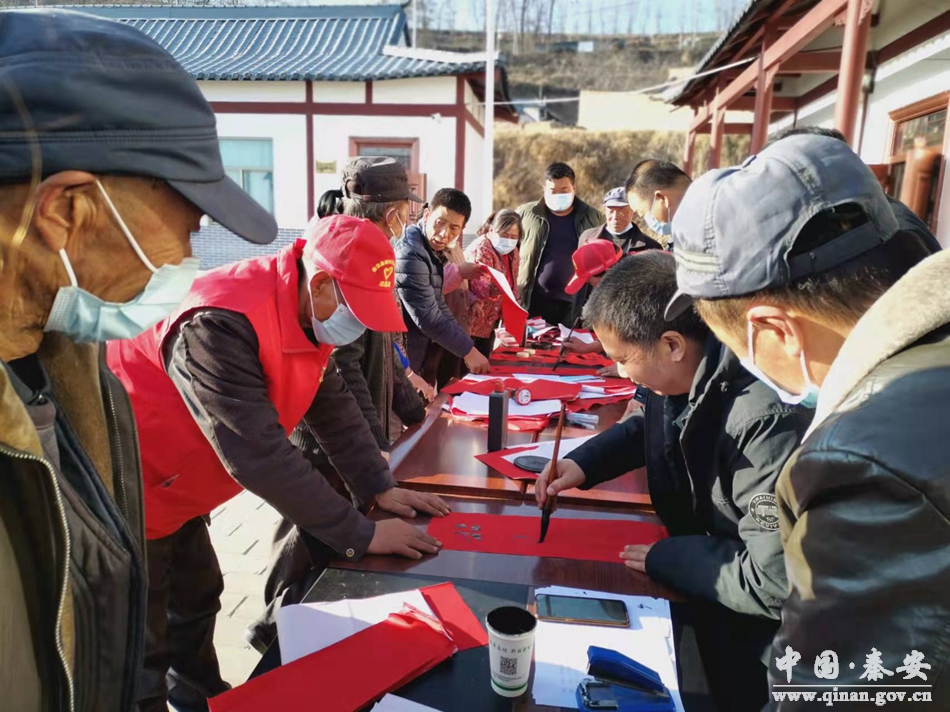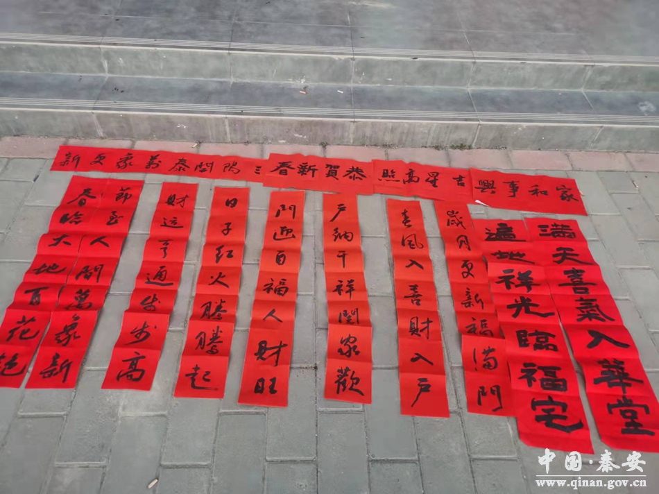 寒冬腊月年将至,暖心举措帮扶情。为进一步弘扬中华民族传统文化习俗,提振文化自信,在新春佳节来临之际,省林草局驻中山镇何山村工作队、中山镇何山村“两委”邀请了秦安县书法协会副主席蔡进阳、本乡本土书法爱好者们共同为中山镇何山村群众免费书写春联,送上节日的祝福。