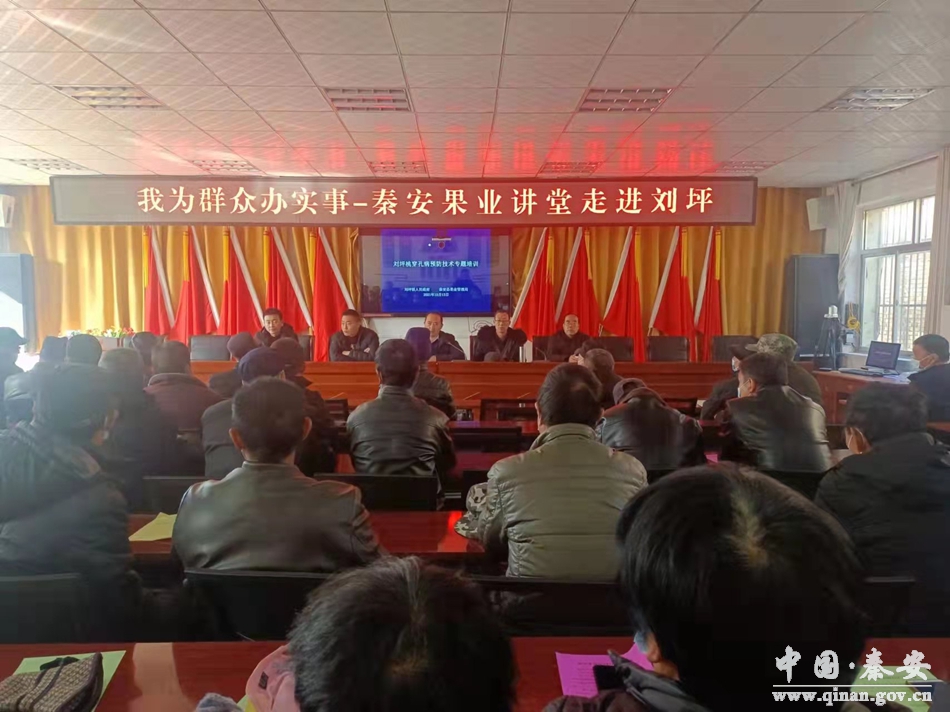 冬训期间,秦安县果业局邀请了省桃技术专家王发林、天水师院专家呼丽萍,同县果业局农艺师高俊商、程进成、徐池明分别就桃栽培技术、果树病虫害防治、桃穿孔病防治、果树整形修剪及土肥水管理技术、苹果提质增效生产技术以钉钉视频形式进行培训,广大党员群众分别在刘坪镇政府主会场、各村分会场参加了培训。