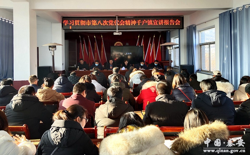 中国共产党天水市第八次代表大会是在全市上下认真学习贯彻党的十九届六中全会精神、开启全面建设社会主义现代化国家新征程、开创高质量发展新局面的关键时期召开的一次十分重要的会议,市委书记张永霞代表中国共产党天水市第七届委员会向大会作题为《高举伟大旗帜 砥砺奋勇前进 为建强省域副中心城市走出高质量发展新路子而努力奋斗》的报告,报告实事求是地回顾总结了过去五年的工作,提出了未来五年的奋斗目标及发展规划,千户镇通过多种形式学习贯彻本次党代会精神。