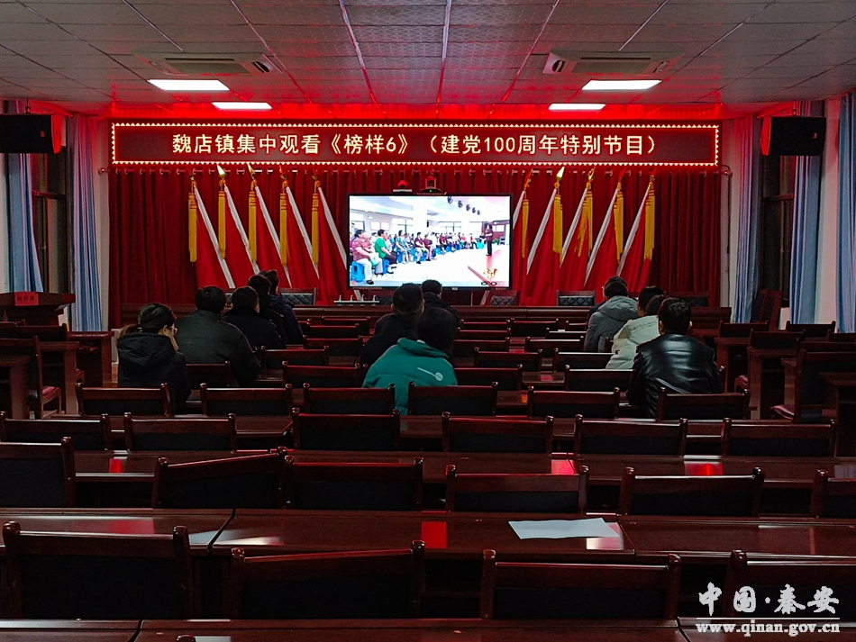 致敬时代楷模,学习榜样精神 ,12月8日,魏店镇组织党员观看中央组织部和中央广播电视总台联合录制的建党100周年特别节目《榜样6》。