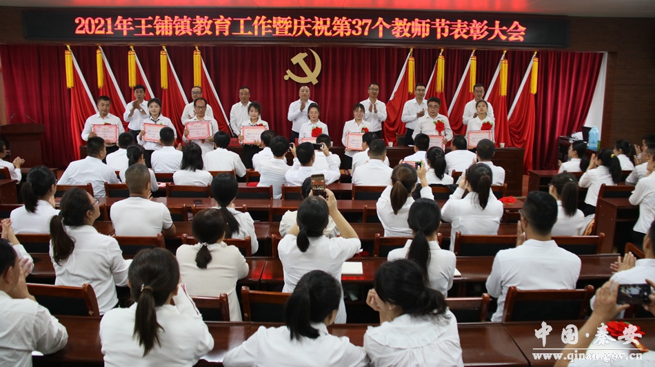 会上,王铺学区负责人作了2020-2021学年度全镇教育工作报告;分管副镇长宣读了镇党委、镇政府《关于表彰奖励2020-2021年度全镇教育工作先进集体和个人的决定》;大会表彰了先进集体、优秀教师、先进教育工作者和师德先进个人;先进集体代表和优秀教师代表分别作了大会发言。镇党委书记代表镇党委、镇政府向受表彰的单位和个人表示热烈的祝贺!向辛勤耕耘在教育一线的广大教师职工致以节日的问候和崇高的敬意!向长期以来关心、支持全镇教育事业发展的社会各界人士表示衷心的感谢!