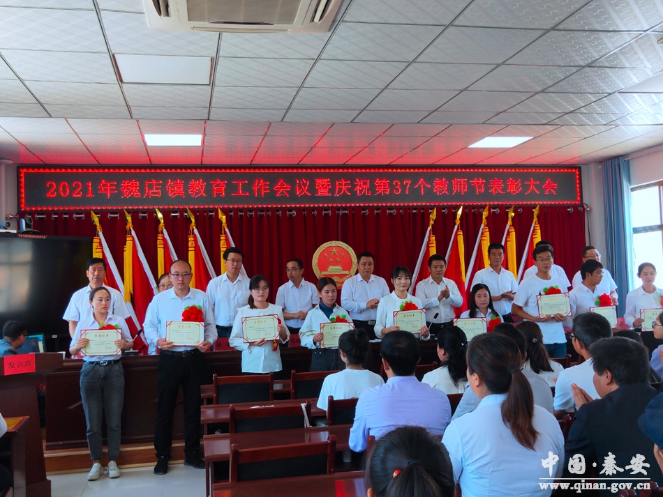 9月9日,魏店镇召开2021年教育工作暨庆祝第37个教师节表彰大会,镇辖区中小学教师职工代表、镇党委班子成员共计120余人参加了会议。