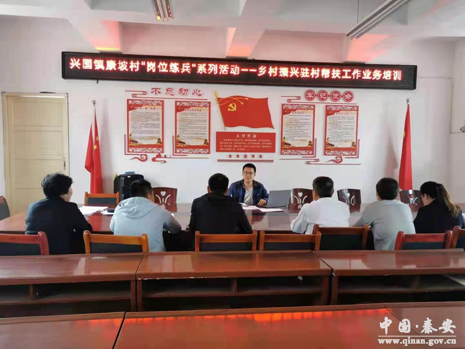 学习政策理论是“岗位练兵”的首要任务。兴国镇积极组织镇村干部、帮扶工作队员集体学习习近平总书记在庆祝中国共产党成立100周年大会上的重要讲话精神和对甘肃重要讲话和指示精神,《甘肃省驻村帮扶工作队管理办法》等内容,同时以支部为单位,重点对党建工作知识、乡村振兴知识进行交流研讨、集中学习。通过学习,镇村干部思想政治素养和政策理论水平得到进一步提高。