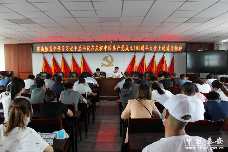 8月5日,陇城镇开展集中学习习近平总书记在庆祝中国共产党成立100周年大会上的重要讲话精神。