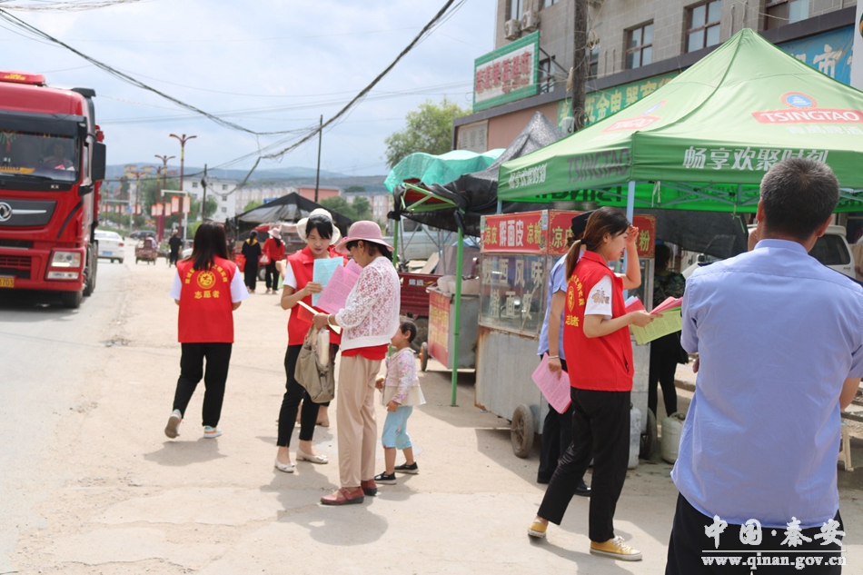 近日,陇城镇交管站、综治办、司法所、派出所、市场监督管理所联合新时代文明实践所志愿者深入到镇区街头、医院、企业、市场等人员密集的场所,开展安全生产和反邪教、防诈骗宣传活动。通过悬挂横幅、在电子屏滚动播放标语、发放宣传资料、口头讲解等多种形式向群众广泛宣传了在汛期应该注意的防汛安全事项、严禁三轮车非法载客以及防范邪教的相关知识,有效提高了群众防灾减灾知识、安全生产意识和反邪教意识,预防了各类安全事故的发生,为全镇群众生命财产安全“上锁”。
