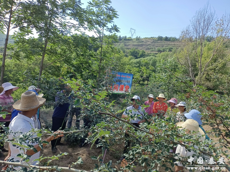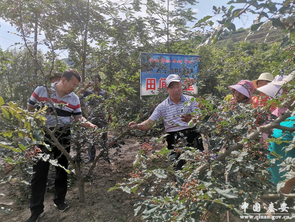 目前正值花椒果实着色期,临近采收。近段时间以来,天气干旱,花椒蚜虫和炭疽病发生严重,如不及时防控将会造成花椒早期落叶落果,影响花椒色泽及品质。7月8日下午,省林草局驻秦安县中山镇肖渠村驻村工作队邀请秦安县乡土专家缑金明为该村花椒种植农户在花椒田中实地为农户做了详细讲解,“开方治病”。肖渠村20余人参加了培训。
