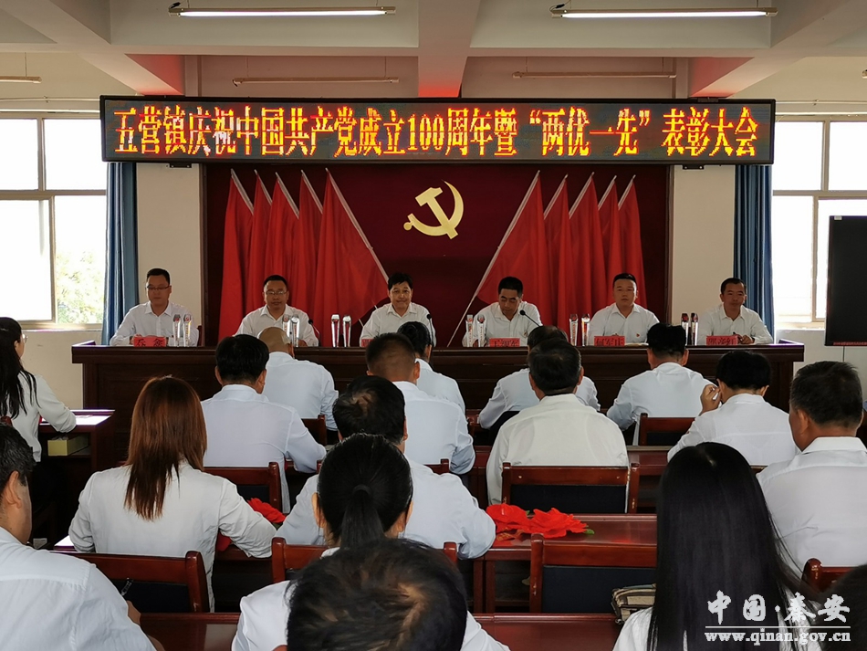 在全国上下同庆中国共产党成立100周年之际,为进一步回顾党的光辉历程,讴歌党的丰功伟绩,结合五营镇党史学习教育计划安排,进一步营造热烈喜庆的节日氛围,让党旗在基层一线高高飘扬,总结表彰一年来在全镇经济社会发展中涌现出来的优秀党员,优秀党务工作者和先进基层党组织,动员和激励广大党员干部先进学习,向榜样看齐,用党史学习教育成效凝聚人心、统一思想、凝聚力量、开拓创新、扎实工作,加快推动“一地双城三中心”落地实施,6月29日上午,五营镇隆重举行庆祝中国共产党成立100周年暨“两优一先”表彰大会。受表彰的优秀共产党员、优秀党务工作者、先进基层党组织、五营镇机关支部全体党员、各村党支部书记、第一书记80余人参加此次表彰大会。