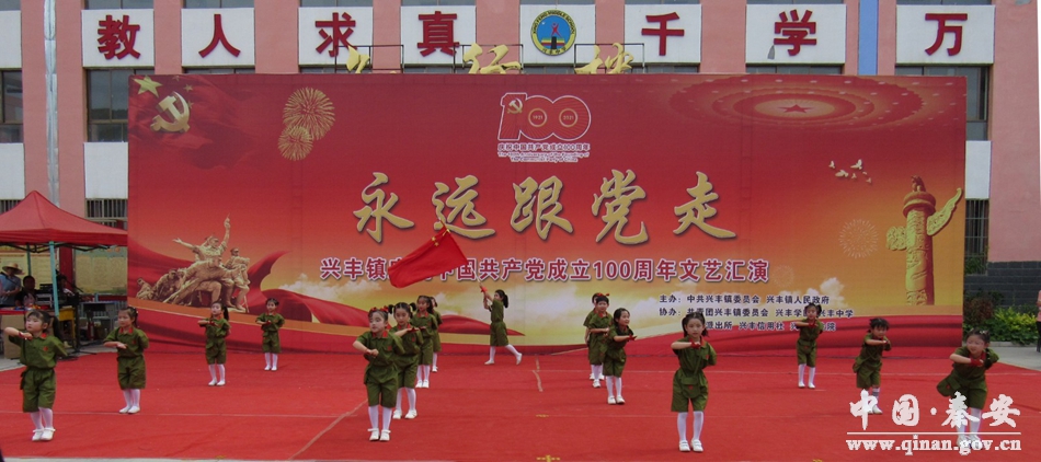 中华崛起迎盛世,巨龙腾飞颂党恩。6月29日下午,中共秦安县兴丰镇党委、兴丰镇人民政府主办,兴丰学区承办的庆祝中国共产党成立100周年文艺汇演在兴丰中学如期举行,文艺汇演以“永远跟党走”为主题。兴丰镇领导班子成员和镇属单位负责人,中小学校长和部分教师、学生、家长代表等干部群众近600人共同参加活动。