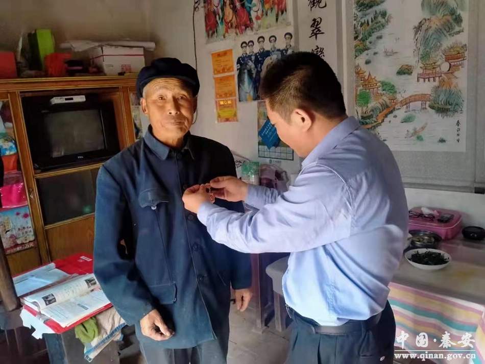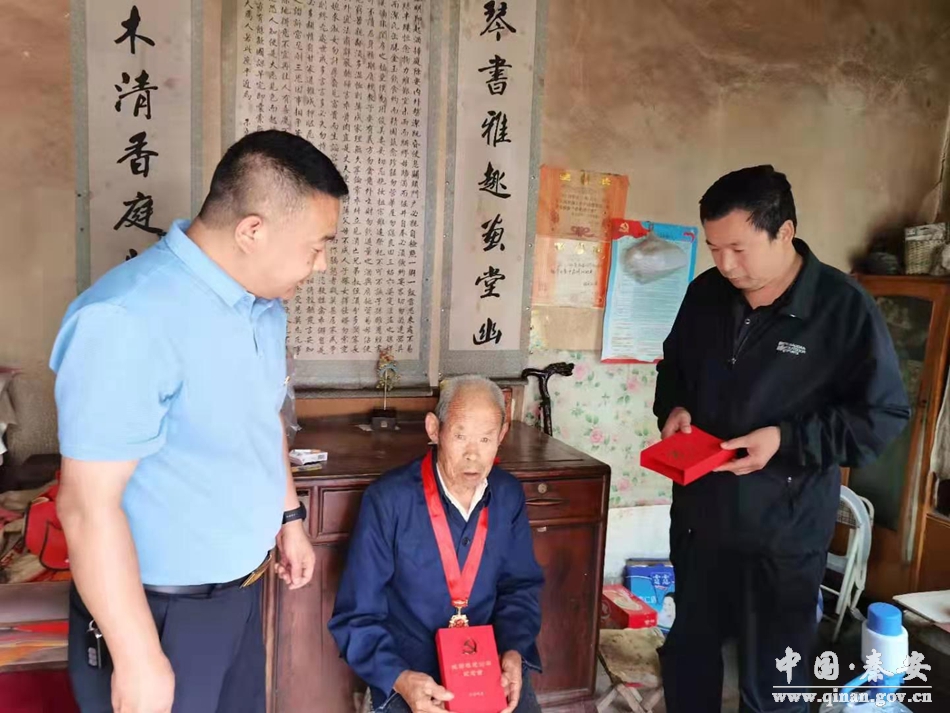 近日,叶堡镇81名党龄在50年及以上的老党员,迎来了一份来自党中央的特殊礼物——“光荣在党50年”纪念章。考虑到老党员出行不便,纪念章由镇领导携村干部分赴老党员家中颁发。