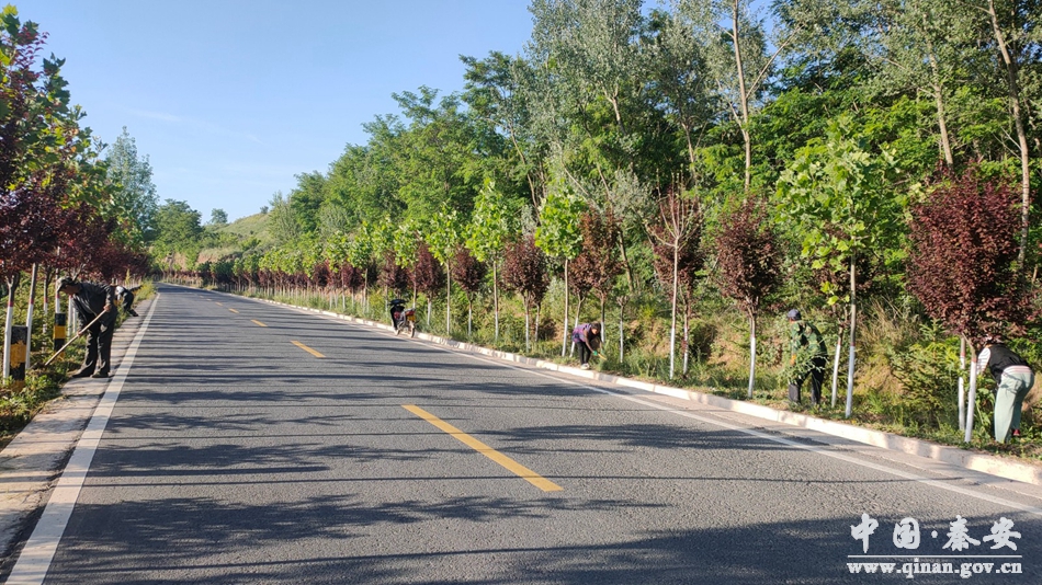 杂草清理突出一个“干净”。行道树两旁杂草的疯长,严重影响了道路两侧行道树正常生长,为了及时美化道路环境,各村组织村组干部、公益性岗位人员对“莲四”路两侧的杂草进行了彻底的清除和矮化,整枝、除草、修筑地埂等一系列管护作业,不遗一树,不留死角,确保管护切实有效。