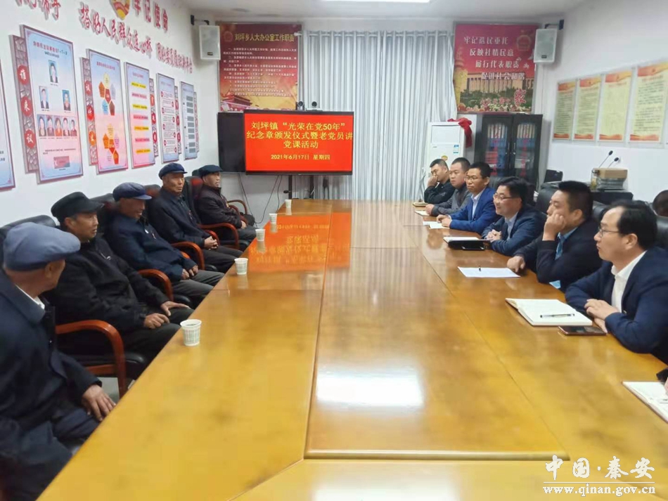 在中国共产党成立100周年即将到来之际,6月17日上午,刘坪镇举行“光荣在党50年”纪念章颁发仪式暨老党员讲党课活动,镇领导、老党员代表共计20余人参加。