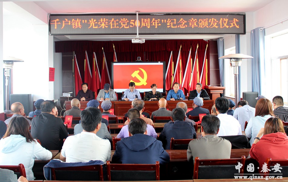 6月18日,千户镇举行“光荣在党50年”纪念章颁发仪式,为党龄达到50年的优秀老党员代表颁发“光荣在党50年”纪念章。
